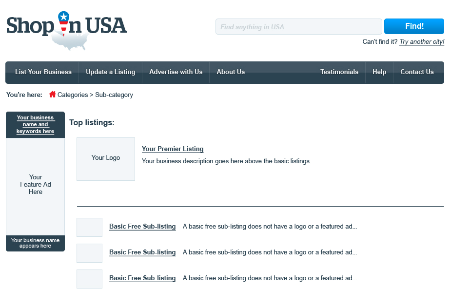 Please consider our "Premier Package", which includes your logo beside your listing, high profile placement above all free listings and one feature ad. With your advertising subscription you can easily change or update your listing and feature ads as often as you like for no extra charge.